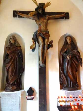 内部にはマリア像や磔刑のキリスト像など、