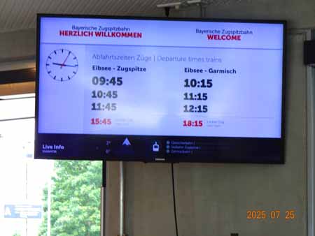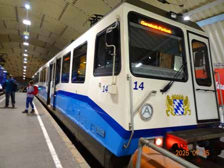 ◎アイプゼー駅にて、ドイツ最高峰のツークシュピッツェ山の山頂近くへ登ることが出来るバイエルンツークシュピッツ鉄道の登山列車に乗車