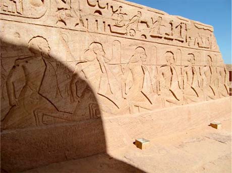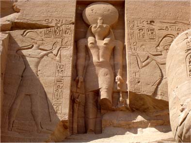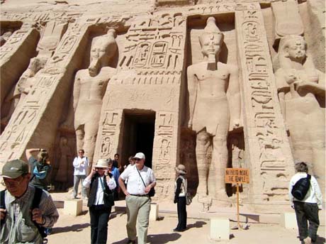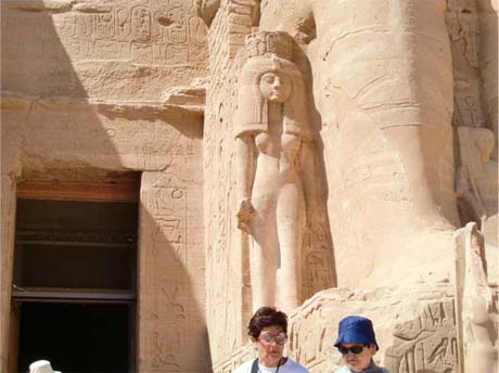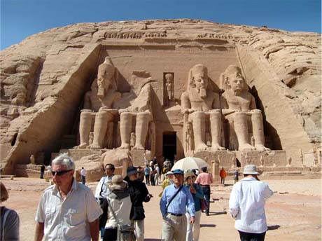 アブシンベル神殿では内部での説明は出来ないとのこと(狭いからか?)、それで外で解説をうけた。途中でスペインの団体がやってきてそのガイドの声がやたらでかい。少し、離れてやってくれればいいのに・・・。 ガイドの説明はここをクリック(風きり音で少し雑音が多い)