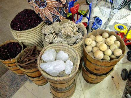 スパイス屋の棚、ずいぶんいろんな物がある |