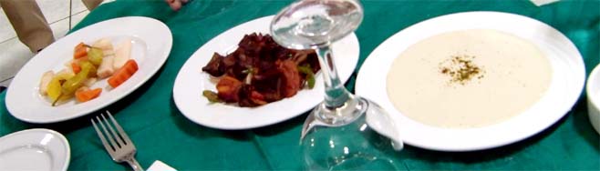 夕食はSALAHED-DINN(アラブの英雄、サラディンのことか?) | サラディンは1187年に十字軍との戦いに勝ち、聖都エルサレムを奪還した。その際、十字軍のように虐殺を行わす、エルサレムで降伏したキリスト教徒を海岸方面に退去させた。この話は映画『キングダム オブ ヘブン』に出てくる。 |