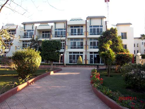 ギザに近い場所にあり、カイロ市内からはかなり離れている。ホテルの前は運河で汚い、ゴミが浮いている。近くに高速道路(?)の工事をしているので渋滞がはげしい。ホテル内部はコテージタイプの部屋がならびずいぶん立派なホテルだった。しかし、カイロ市内から遠いので星の数よりは格落ちのホテルらしい。 |