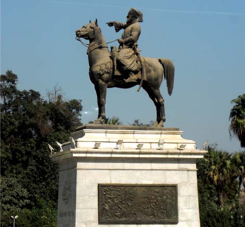 ツタンカーメンの墓を守る兵士像のレプリカ(博物館の向かいにある本屋の前)、これは昼間の像 |