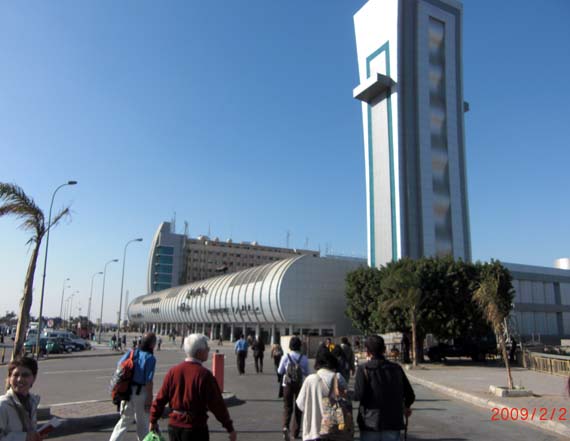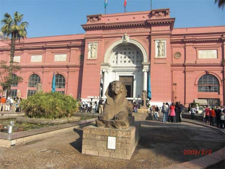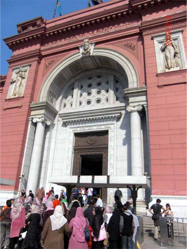 エジプト考古学博物館。内部は撮影禁止。内緒で撮影している外人女性がいた。 | |