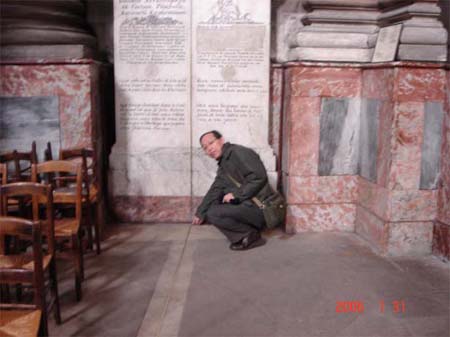ダビンチコードで有名にならなければなんお変哲もないもので床の仕切り線かなにかと思ってしまう。この線上に太陽が来たときが12時となるのか?