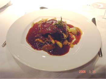 鴨の腿肉コンフィ、エシャロット・ソース、ポテト炒め |