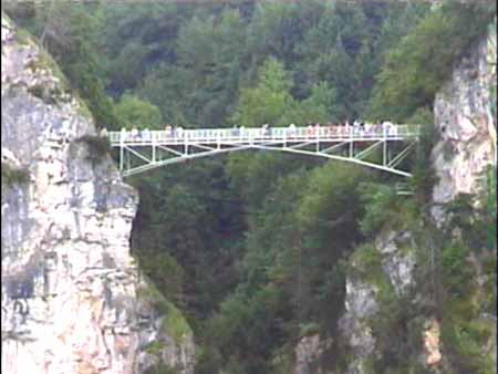 | 夕食前に町を見学に行く。 このホテル日航の指定ホテルになっているとのことで、日本語の町案内が置いてあった。 それを見ながら町に出る。町のはずれのレヒ川からの眺めがおすすめです。 流れの速い川の向こうに山が見えて美しい。 夕食付であったので食堂へいくと日航のツアーが来ており、ホテルの人(?)パフォ−マンスをやっていた。 シュニッエルが出たが、2日続けてこれを食べると胸やけがしてきた。 あとでカレーライスが出てきたのはご愛嬌だが、 少ししゃぶしゃぶであまり上出来とは言えなかった。 (レトルトのほうがよかった?) |