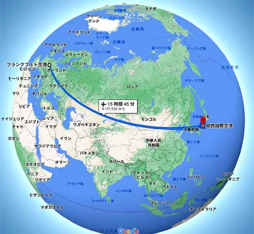 ![]() フランクフルト国際空港から関空 |