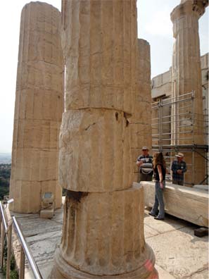 ドリア式石柱、柱は内側に少し傾けている