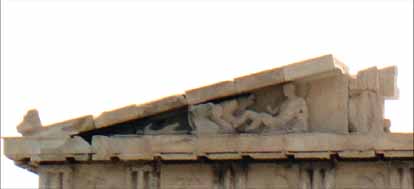 神殿の東側(これが神殿の正面)の破風(左の画像)にはアテナ神誕生に関する神達の像があった。