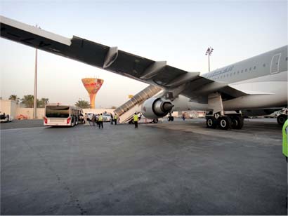 ドーハ国際空港、なんでバス移動させるのか・・・。