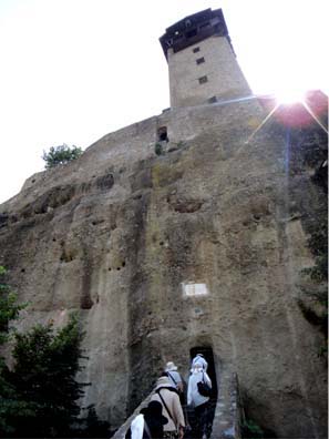 高さ565mの岩の上にあり、130段の階段を上らなければ入れない。