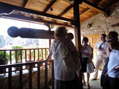 昔は現在のような橋や階段(115段)がなく、梯子や滑車につるした網袋で修道院に出入りしていた。 |