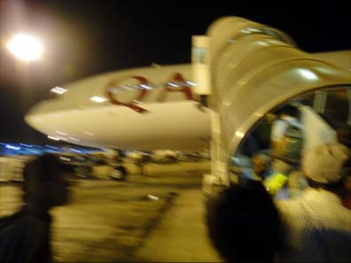 | 乗り継いだQR-0802便はかなり旧型で座席のモニターも小さく、リモコンも椅子にくっついたまま、操作しずらい。 | ||||||