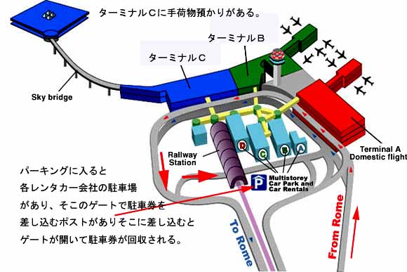 空港内にスムーズに入れた。駐車場も右図のように走行して間違えずに入る。 |
