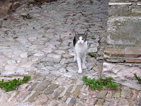 あいそよく旅行者に『ボンジョウルノ』と挨拶してくれた。道の路地に猫が3匹いた。