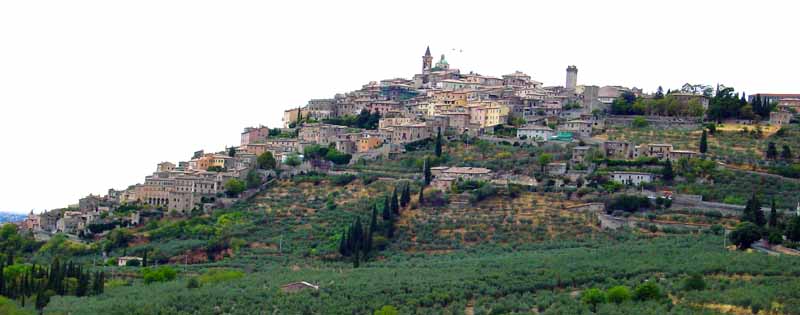 それではとトレビに向かった。道路からは左手の山の上にある町だ。