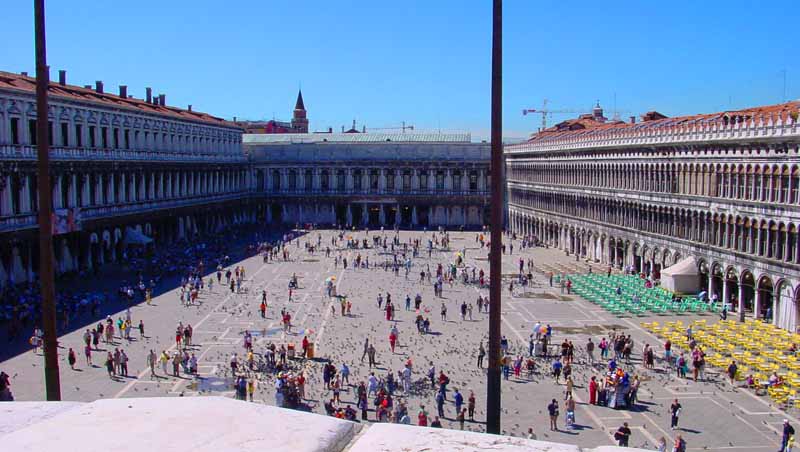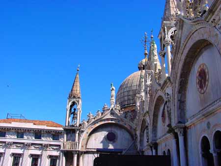 サンマルコ広場に戻ってきたところでサンマルコ寺院に向かう。正面玄関にだれも並んでいない??