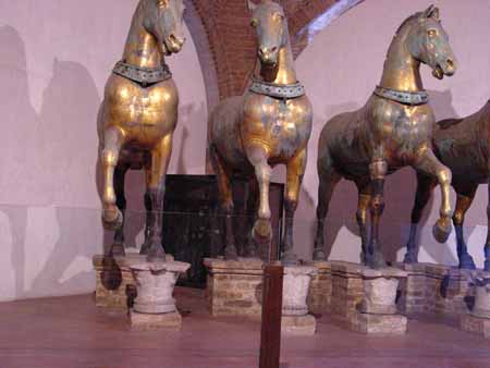 サン・マルコの馬、クアドリガ(4頭の並行する馬に引かせたローマ帝国時代の車)。