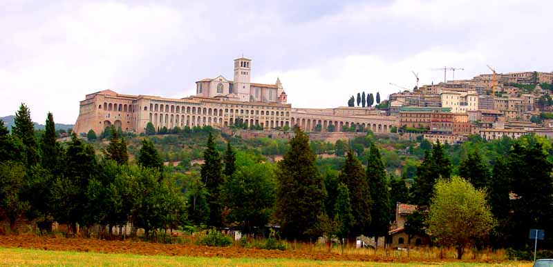 アッシジの町が見えてきた。イタリアの町は遠くから見るのがいい眺めだ。