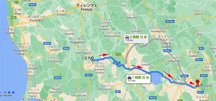 ペルージャまでのE78、S326は2車線に広ろげる工事をしていた。