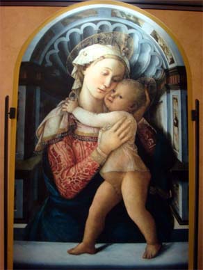 南正面玄関のニッコロ・ディ・ルカ・スピネッリ作のテラコッタ像「聖母子」「聖ドナート」