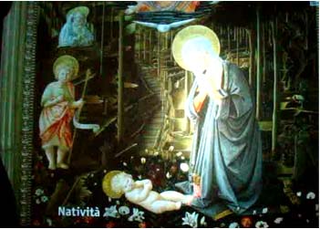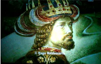 ベニッツォ・ゴッツォリのフレスコ画「ベツレヘムに向かう東方の三賢王」(実物は撮影できないので説明ビデオをコピー)