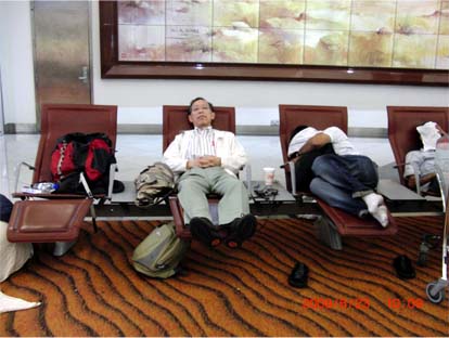 例のごとく、床の上に寝ている人をちらほら見かける。ホームレスのようだ、中にはいびきをかいて寝ている人も、いい根性をしている。 一部にリクライング椅子が整備され足を伸ばして寝られる。開いているところがあったので耳栓とアイマスクをして2時間ほど寝た。これは寝やすい、かなりいいサービスだ。