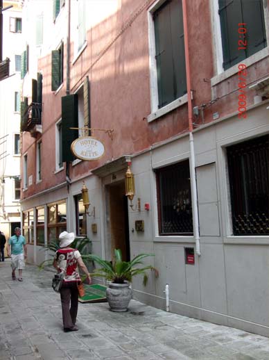 ホテルの廊下、前回、ベニスに来たときは3星のホテルで床が傾いていたおり、少しひどかった。しかし、今回はそれに懲りて4つ星にした。これは間違いなかった。