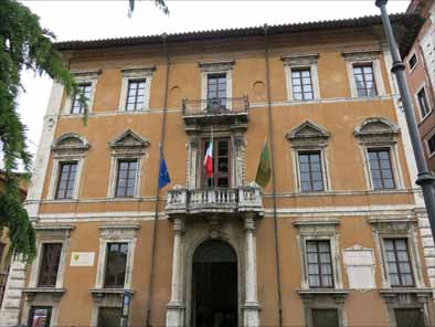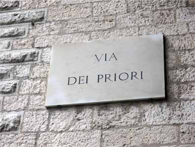| 恩寵(おんちょう) ラテン語: Gratia, 英語: the divine grace、すなわち神の人間に対する働きかけ、 神の人類に対する慈愛を意味する概念につき扱う。恩恵・聖寵・神の恵み・恵みとも表記される。 引用:フリー百科辞典WIKIPEDIA《詳細》 プリオーリ宮(Palazzo dei Priori) プリオーリとは自治都市の時代の最高指導者たちのことである。 13〜15世紀頃にゴシック様式で建設された公共建築物である。 11月4日広場に面した入り口の階段の上には左右にグリフィンとグエルフィのライオンが飾られている。 もう一方の中央入口の扉上部の半円形の中には、3人の守護聖人の像がならんでいる。 内部には、奥行き27m、幅14mもの大広間「公証人の間」がある。 天井はカヴァッリーニ派のフレスコ画で装飾され、中世の豪華な集会所を見せてくれる。 また精巧な寄せ木細工で飾られた15世紀ころの「商人組合」も見ることができる。 |