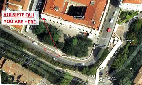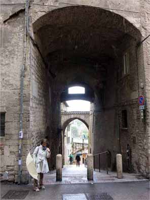| プリオーリ通りを通ってサン・ベルナルディーノ教会へ。 途中にアッピア通り、シーリの塔がある。 |