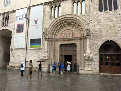 | 雨が降ったり,、止んだりなので雨宿りのつもりでウンブリア美術館に入った。 国立ウンブリア美術館Galleria Nazionale dell' Umbria ルージア大学(1308年設立)の中に1863年に創設されたが、 1879年にプリオーリ宮に移転し、1918年には国立となった。 ペルジーノ、ピントゥリッキオを始めとする13世紀から18世紀にかけてのウンブリア派の絵画が展示されている。 入ってすぐの所は、同じような主題の祭壇画が並んでいるので少し飽きてしまう。 ここの部分はさっと流し見して、後半の部分を時間をかけて見た方がよいだろう。 |
