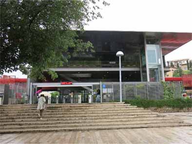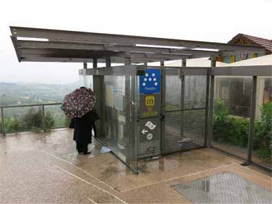 | 雨がほとんど止んだが、曇り空で気温が低い。 もと来た道を引き返し、シーリの塔の近くにミニメトロのCupa駅へ行く標識があり、 それに沿って歩いた。 途中でエスカレータと短いトンネルがあり、 それを抜けるとCupa駅が見えた。 |