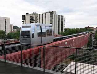 車輪の通るところにケーブルが見える。 スキー上のリフトのようなシステムで車体を引っ張っているようだ。 終点のPincetto駅の一つ手前からトンネルに入っていく、たしかに地下鉄だ。 |