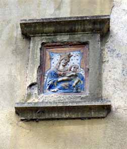 | このテラコッタのフリーズは彫刻家Andrea Sansovino(1460〜1529)によるもの 彼はアレッツォ近郊Monte San Sovino (Savino)に生れた。 フリーズFrieze 建築用語で、エンタブラチュアの中央の、幅広い部分を指す。 簡素なものもあれば、イオニア式、コリント式のレリーフで装飾されているものもある。 円柱の壁ではフリーズの位置は、アーキトレーブより上、コーニスのモールディングより下部になる。 引用:フリー百科辞典WIKIPEDIA《詳細》 |