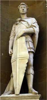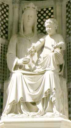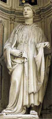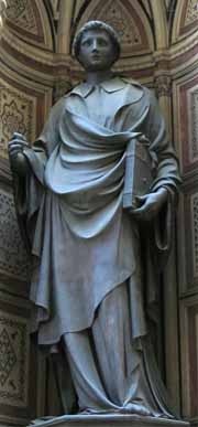 | 外壁の側面にはくぼみ(ニッチ)が作られ、そこには14〜16世紀に活躍したフィレンツェの彫刻家の作品が飾られている。 ニッチ(英: niche、フランス語読み:ニーシュ) 像や装飾品を飾るために寺院などの壁面に設けた窪み(壁龕:へきがん)のことを指す。 引用:フリー百科辞典WIKIPEDIA《詳細》 |