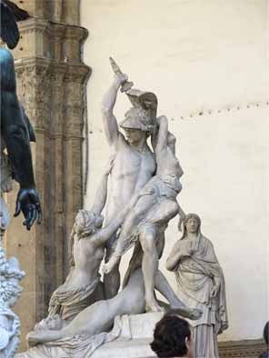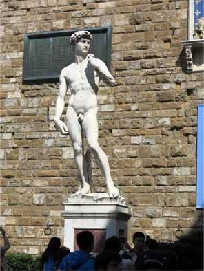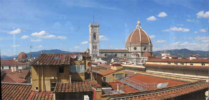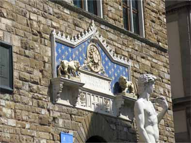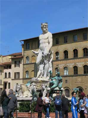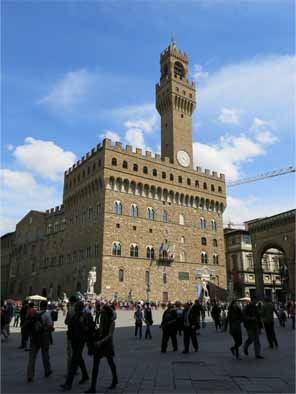 | まだ、夕食に行くには時間が早いので、ベッキオ宮殿に行ってみた。 今日は晴れているので建物が鮮やかに見えて気持ちがいい。 |
