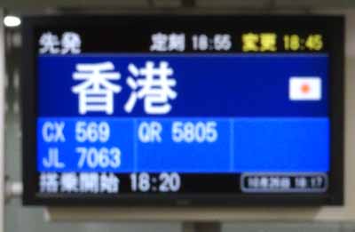| 定刻で香港離陸、かなり途中で揺れた。 |