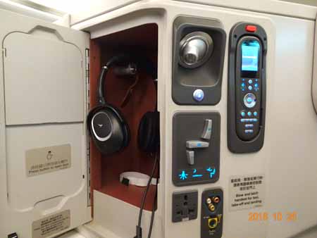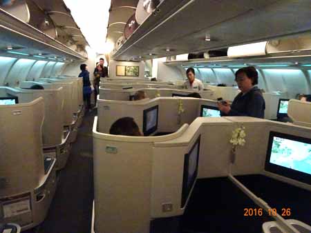 ビジネスの席は完全に独立、席が横に向けているのでまっすぐより席の幅は広くなる。アリタリア航空のビジネスはまっすぐなので座席幅は狭くなる |