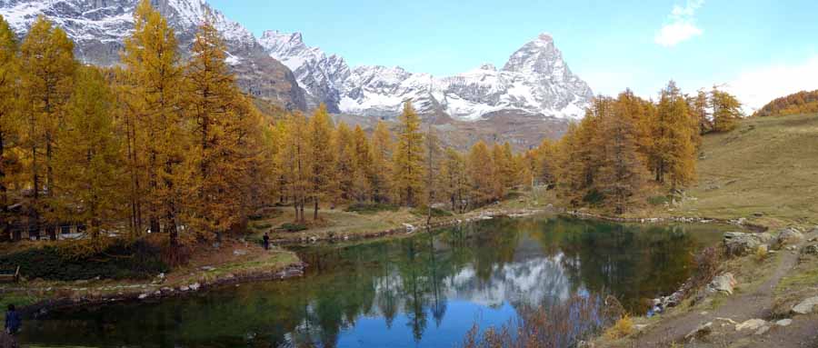 ○イタリア側より、ブルー湖に映る「逆さマッターホルン」を