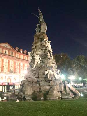 この記念碑は1879年にスタトゥート広場にルイージ・ベッリ(Luigi Belli Belli)によって作られた。石のピラミッドは、光り輝く大理石の中にタイタンの体を表現し、ピラミッドの頂上には科学の翼を持つ天才を表現している。
