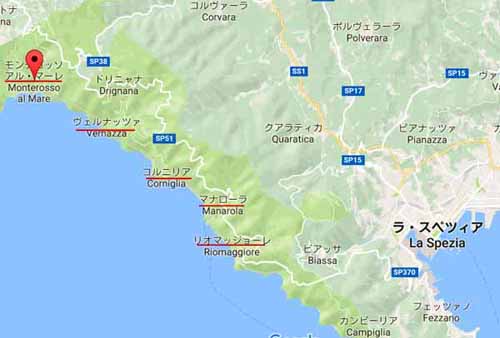 リオマッジョーレ (Riomaggiore) - 東南端行政上はラ・スペツィア県に属し、モンテロッソ・アル・マーレ、ヴェルナッツァ、リオマッジョーレの3つの基礎自治体(コムーネ)にまたがる。