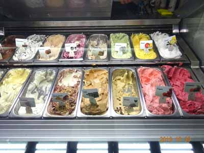 広場にはしゃれたカフェ、ジェラート屋がある。 |