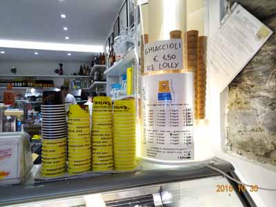 この通り沿いにレストラン、カフェ、ジェラート店、パン屋さんなどがある。