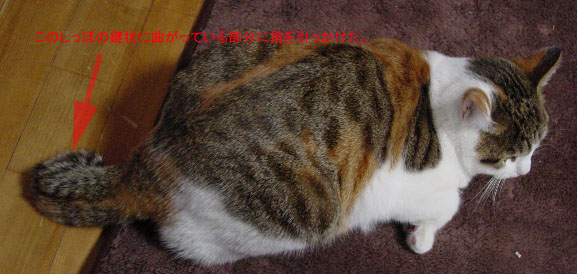 コーヒー・フレッシュの残りをなめさせて機嫌をとりなんとか膝の上にのせようとしたがうまくいかず。次は煮干しで気を引こうと考えている。しっぽの曲がっている部分に指を引っかけてひっぱたら、突然怒り出して前足でひっかかれた。右手の甲に3cmくらいの傷がついた。これでまた機嫌をそこねたようだ。