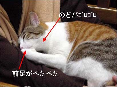 もう1年も経つのに、相変わらず膝の上にのるとのどを鳴らして前足をしゃぶっています。