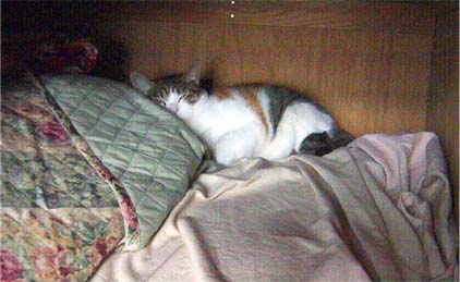 2003年3月22日 バニラが当方に来てから1年半が経ちました。犬もそうでしたが、猫にもいろいろ個性があっておもしろいものです。 彼女の1日を紹介しますと、 朝6時半起床、えさの催促をします。妻の枕元に座って『ふにゃ、ふにゃ』と甘えた鳴き声で起こします。それでも起きなければ胸元あたりに座り込んで前足で顔を触ります。(最近では起こされるのがかなわないので寝る前にえさを入れておきます) 食事を食べると次は爪とぎを始めます。それが終わるとベランダへ出してくれと甘えた声を発します。仕方がないので少し戸を開けてやるとベランダに出ていきます。どうも雀の鳴き声が気になるようでじっと様子をうかがっています。 午前7時30分、当方の朝食開始。バニラを部屋に戻します。(最近、油断するとベランダの手すりの上に昇るようになって危ない。) 15分くらい妻の膝の上にのって目を細めて前足をしゃぶっています。それがすむと残りのえさを食べます。その後はどこにいったのか雲隠れしております。 午後は例によって押入の布団の上で気持ちよさそうに寝ています。最近は押入の戸を開けるのがうまくなって前足で器用に戸を開けます。夕方になり私が戻ってくると、必ず押入の中をのぞきますので迷惑そうにしています。妻と娘が帰ってくると押入から出て挨拶にきます。どうも男嫌いのようで私と息子が帰っても絶対に挨拶には出てきません。 ![]() 午後11時、妻が風呂に入ろうと洗面所に向かうと、さっとどこからともなく現れて後ろを追っていきます。そして風呂場の前で出てくるまで座って待っています。まるで忠犬ハチ公のようです。我が家では忠猫バニラと呼んでいます。 午前1時、みなが寝静まると、部屋の中をうろつきはじめ、俄然元気になってきます。光る物や小さくて転がるものが好きで前足で転がして遊んでいます。やはり猫は夜行性動物であることがよくわかります。 その後はいつのまにか妻の足下の布団の上で寝ています。布団のど真ん中を占領するので足を横に置かなければならないので困ってしまうと言っておりますが、なついてくれるので仕方がないと我慢しておるとのことです。 |