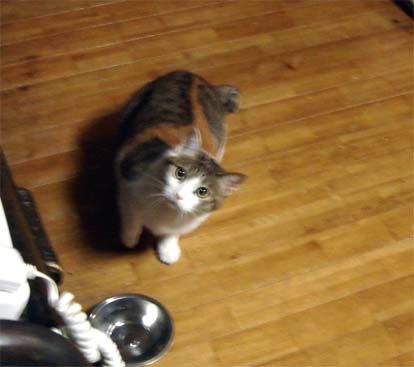 最近はキャットフードすぐに食べようとしません。妻の方をうらめしそうに振り返って見ています。大好きなネコ缶を催促しているのです。