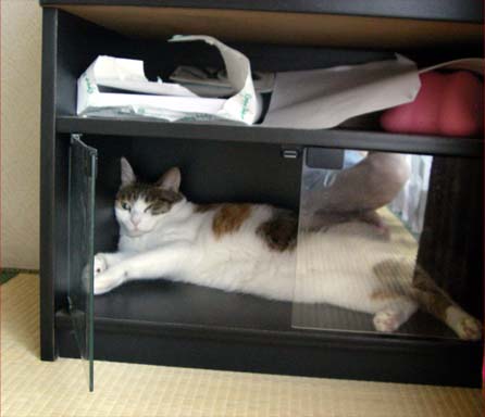エアコンかけたらテレビ台の下に潜り込んでいる