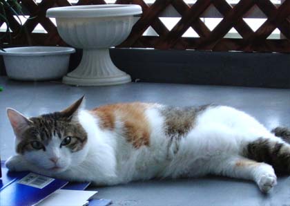 エアコンを止めたらベランダの床で寝そべっています |